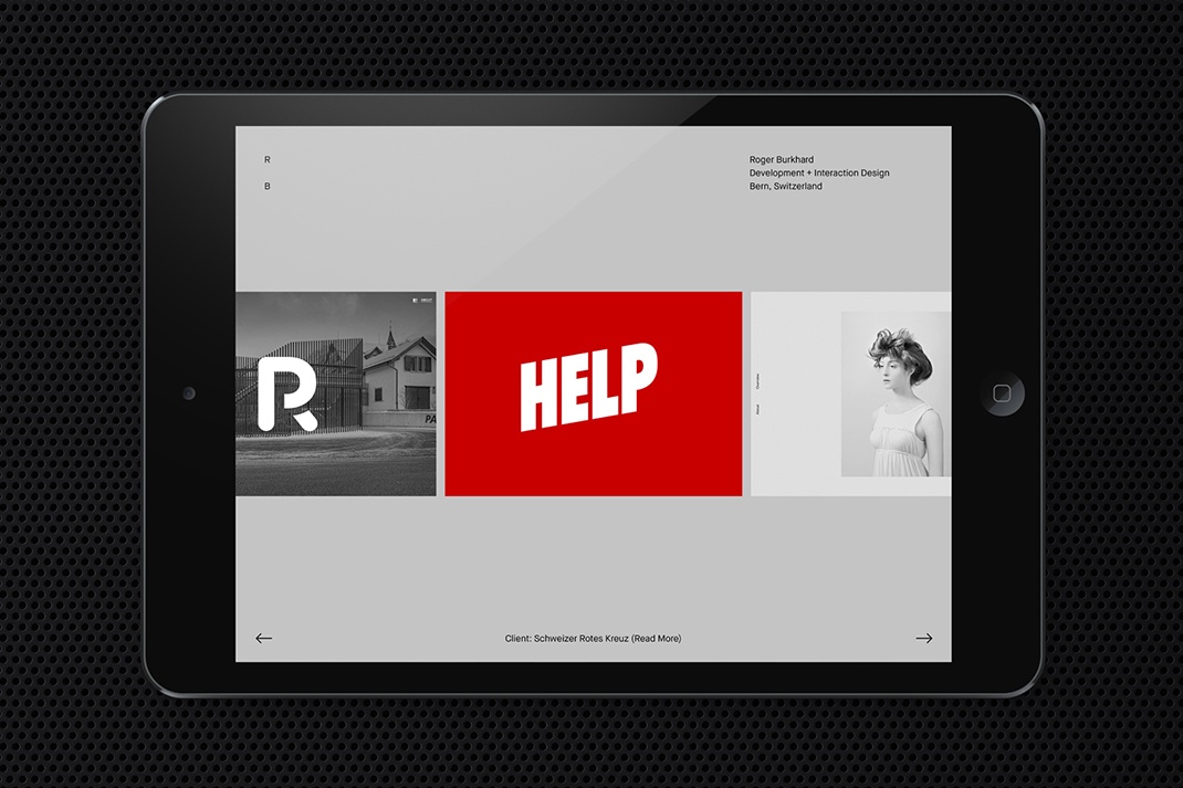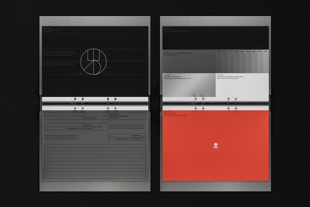 一個響應(yīng)的標(biāo)題,其中包含關(guān)鍵的聯(lián)系人詳細(xì)信息,據(jù)說是品牌標(biāo)志的延伸,一個具有反轉(zhuǎn)'R'和'B'的會標(biāo)。就像支撐Roger Burkhard工作特征的精確系統(tǒng)的代碼線一樣,品牌識別旨在找到形式和功能的引人注目的交叉點(diǎn)。響應(yīng)式網(wǎng)格響應(yīng)系統(tǒng),以及響應(yīng)式標(biāo)題,水平延伸以適應(yīng)格式,并在整個過程中建立美學(xué)和有用的連續(xù)性。這并不罕見,但在不同尋常的材料中應(yīng)用具有交流的廣度和視覺區(qū)別。