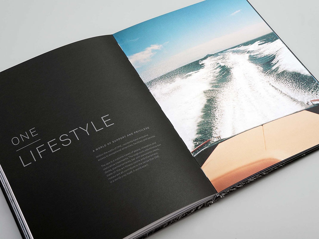 開發了一系列潛在的名稱,其中包括雄辯地提到塔樓的拱形外部線條,垂直旅程,黃金地段和前所未有的景觀,楊盧瑟福最終推薦了一個名稱,立即向非英語區域的客戶傳達奇異的視覺信息。作為中東,以及俄羅斯和中國的國家。對所有人來說都是如此容易理解,ONE毫不費力地實現了這一目標。