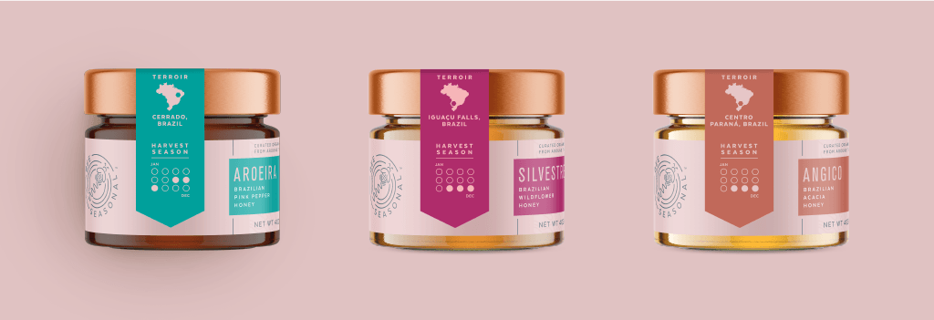 蜂蜜的風(fēng)味和顏色是該位置所特有的,所有這些都在蜂蜜包裝設(shè)計(jì)上清楚地表達(dá)出來。此外,收獲季節(jié)對于蜂蜜的風(fēng)味和特性至關(guān)重要,蜂蜜的不同特征也體現(xiàn)在蜂蜜的風(fēng)味和特性上。