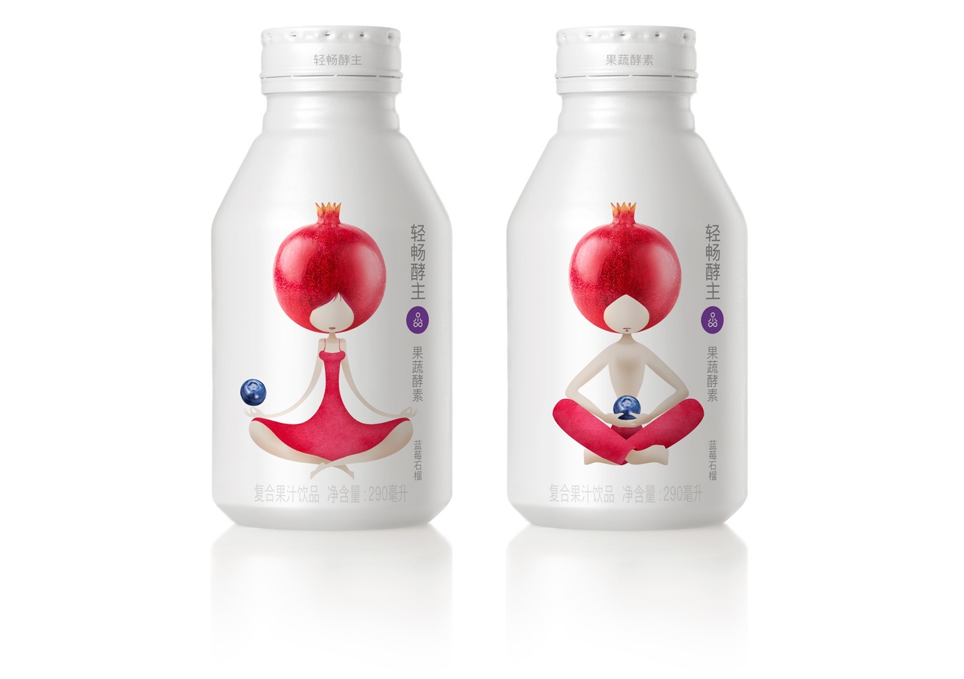 設(shè)計(jì):我們的客戶將產(chǎn)品指定為“可飲用瑜伽”。我們始終忠實(shí)于該描述,以尋找能夠最流暢地傳達(dá)信息的插圖。我們以瑜伽為靈感的角色是人類水果嬉戲的混合體,僅限于優(yōu)美的曲線線條和自然色彩,因此可以自然,樸實(shí)的方式喚起品位,寧靜和身心健康。兩種水果-植物的組合(諾麗和接骨木花/玫瑰,石榴和藍(lán)莓)在每個(gè)角色的特征中都很明顯,而包裝的其余部分則保持白色,并平衡所有相關(guān)信息的字體。這是一個(gè)包裝,著重于不同設(shè)計(jì)元素的有效和流暢的協(xié)作,以建議您放心,保持身體平衡以及天真,年輕的心情。